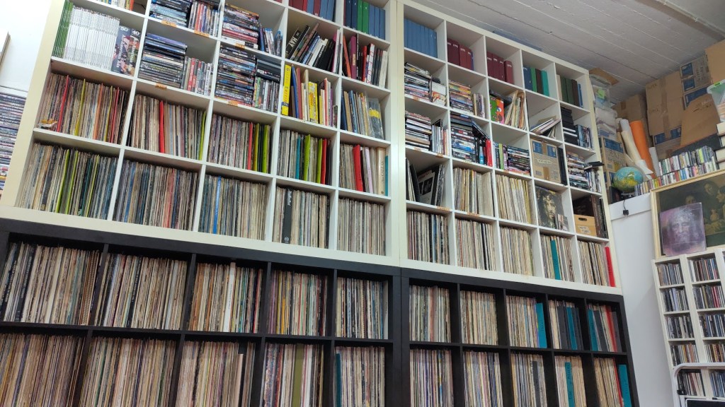 Onlangs een tas overtollig verklaarde CD´s weggebracht naar Red Bol in Nijmegen. Aldaar kwam ik direct onder de bekoring van de uit de hand gelopen discogs avonturen van Alfred Bol, vormgever. Niet alleen beheert deze Bol een gigantisch magazijn van geluidsdragers die hij als een ware Sisyfus online zet en wereldwijd doorverkoopt, als vormgever en initiatiefnemer heeft hij inmiddels ook een flink aantal publicaties op zijn naam staan. Onder andere een boek over alle aanstekelijke energie rondom het Nijmeegse stencilatelier Knust (tegenwoordig kunstorganisatie Extrapool).